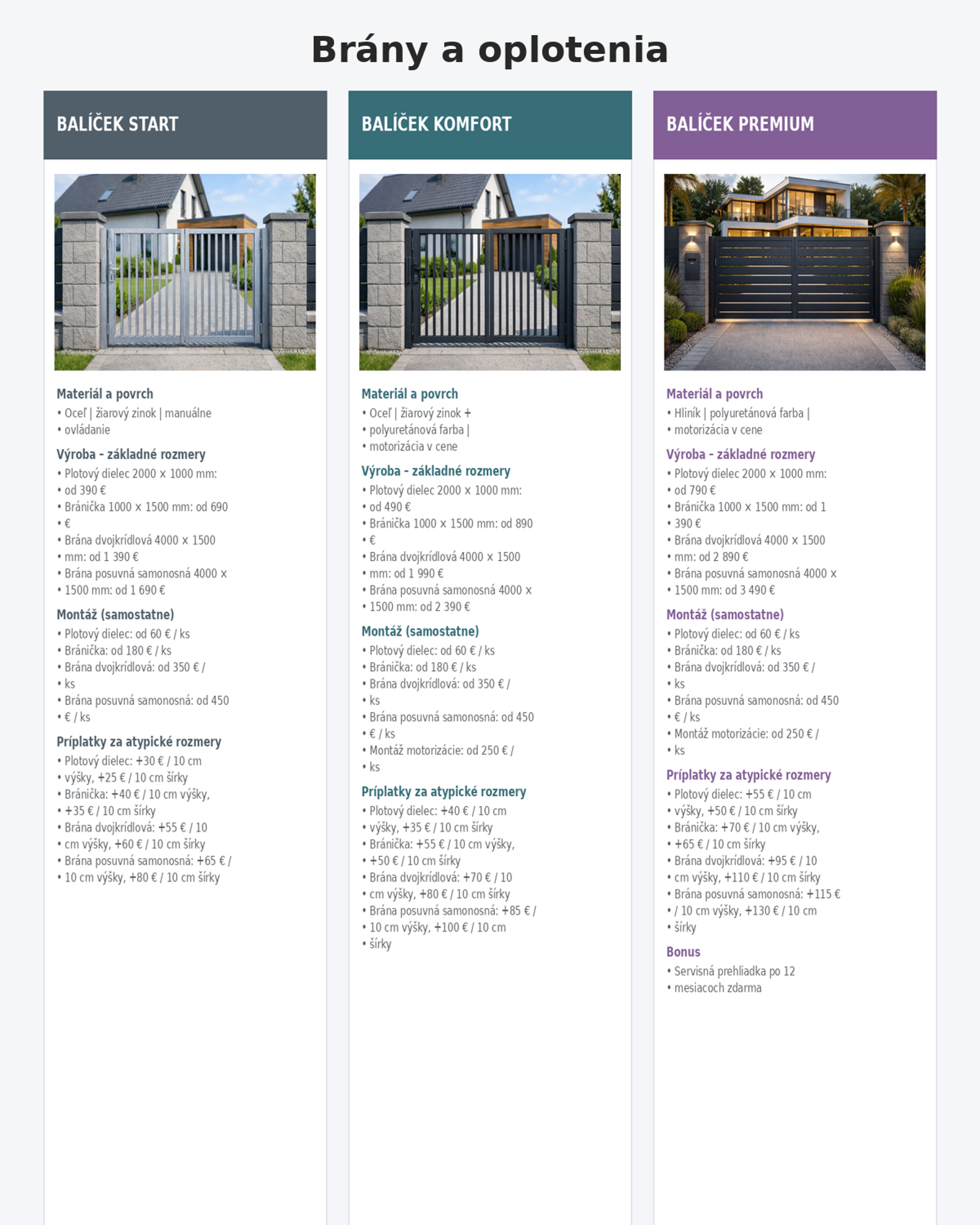 Brány vieme dodať v základnom prevedení aj ako kompletné riešenie s pohonom a montážou.